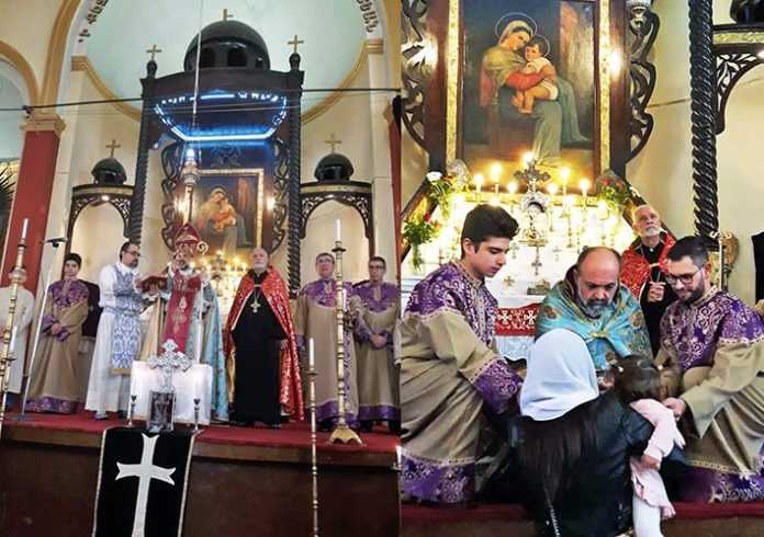 Կիրակի՝ 9 Դեկտեմբեր 2018ի առաւօտ ժամը 9։30ին, կատարուեցաւ առաւօտեան ժամերգութիւն։ Ետքը տեղի ունեցաւ Սուրբ Պատարագ։ Ընդառաջելով Թաղային Խորհուրդի հրաւէրին՝ Պատարագը մատուցեց Յունաստանի հայոց թեմի առաջնորդ Գեղամ Արք. Խաչերեան։ Պատարագի երգեցողութիւնը կատարուեցաւ քառաձայն՝ եկեղեցւոյ դպրաց դասին կողմէ, խմբավարութեամբ պրն. Քերոբ Էքիզեանի, իսկ երգեհոնի վրայ իր մասնակցութիւնը բերաւ տիկ. Լիանա Սարեան։ Դպրապետը, սարկաւագներն ու դպիրները զգեստաւորուեցան նոր շապիկներով, որոնք յատկապէս ապսպրուած էին Թաղային Խորհուրդին կողմէ Երեւանի մէջ գտնուող ընկերութենէ մը։ Անոնց ծախսը յանձն առած էին խումբ մը ազգայիններ։ Նոր շապիկներու եւ ուրարներու օրհնութիւնը կատարուեցաւ Ուրբաթ երեկոյ, աղի օրհնութենէն ետք։