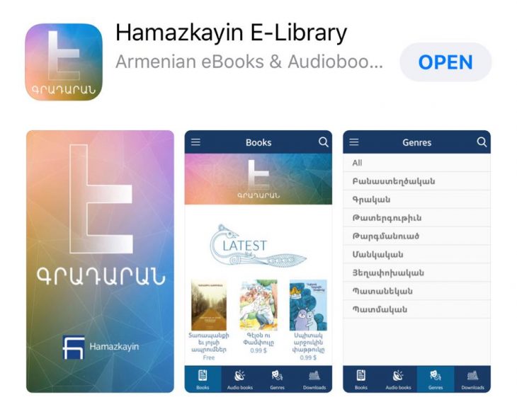 Andrioid եւ IOS համակարգերու համար ստեղծուած ե-գրադարանը անվճար կրնաք ներբեռնել app store էն եւ կամ play store էն։