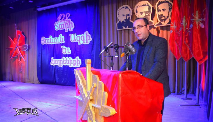 Օրուան բանախօս ՀՅԴ Հայաստանի Գերագոյն Մարմինի անդամ ընկ. Արթուր Ղազարեան ակնարկ մը նետեց ՀՅԴ հիմնադրութեան ու պատմութեան բոլոր փուլերուն վրայ, դիտել տալով որ ՀՅ Դաշնակցութիւնը հայոց հողին համար պայքարի տարիներուն ծնունդ առաւ եւ մղուեցաւ պայքարի՝ յանուն հայ հողին եւ հայ մարդուն։