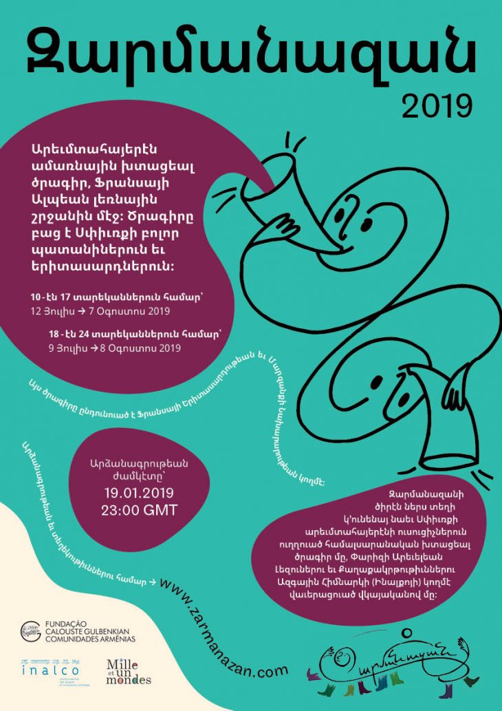 «Զարմանազան»-ը բաց է Սփիւռքի պատանիներուն եւ երիտասարդներուն։ Տրամադրելի տեղերու թիւը սահմանափակ է։
