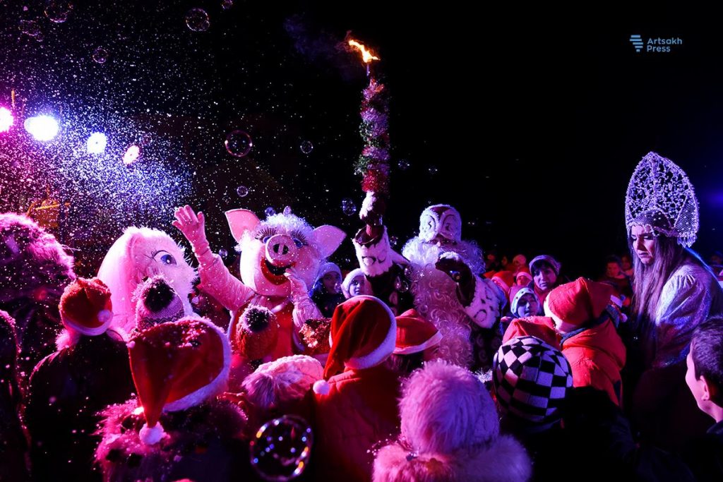 Ստեփանակերտի Վերածնունդի հրապարակին վրայ Դեկտեմբեր 19-ին, վառած են գլխաւոր տօնածառի լոյսերը:
