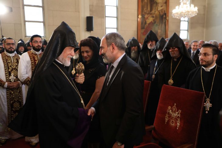 Երկուշաբթի, 14 Յունուար 2019-ին, Հայաստանի Հանրապետութեան նորանշանակ Վարչապետ՝ Նիկոլ Փաշինեանի նշանակման առիթով Ն.Ս.Օ.Տ.Տ. Արամ Ա. Վեհափառ Հայրապետը յատուկ նամակով մը շնորհաւորեց զինք: Նորին Սրբութիւնը իր նամակին մէջ յատկապէս ըսաւ. «Լիայոյս ենք, որ թաւշեայ յեղափոխութեան նպատակները ու մեր ժողովուրդին ակնկալութիւնները պիտի արդարցնէք ժողովրդանուէր ու հայրենակերտ ծրագիրներու մշակումով ու իրագործումով»: