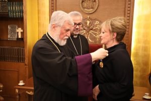 Արամ Ա. Կաթողիկոս Մեծի Տանն Կիլիկիոյ Կաթողիկոսութեան «Ասպետի Կարգ»ի Շքանշանով Պարգեւատրեց Տիկ. Մէթթի Տումանեանը