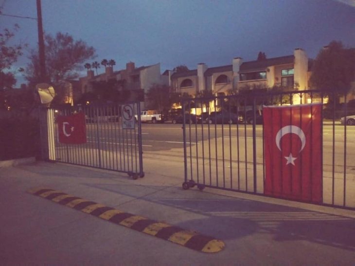 Ferrahian principal Sossi Shanlian informed everyone that surveillance cameras captured a masked man allegedly trespassing onto school property at around four in the morning on Tuesday. Shanlian said the suspect, dressed in black clothing with face and head covered, jumped the front gate and started hanging Turkish flags in the parochial school’s courtyard. At Ferrahian, the Turkish flags were hanging feet away from the steps leading to the Armenian church on-site. The suspect also allegedly targeted AGBU Manoogian-Demirdjian School in Canoga Park, which is about five miles away.