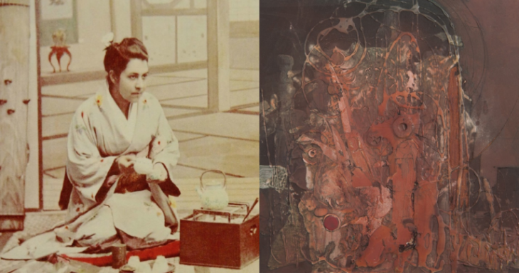 A survivor of the Armenian Genocide, Berj Kailian fled from her home in Ottoman Turkey, strapped to her mother’s back, to Yerevan (present-day Armenia). They managed to board the Trans-Siberian railroad to a refugee camp in Vladivostok, Russia, where Diana Apcar reached out to bring them to shelter in Yokohama. She arranged their passage on the Mexico Maru to sail to Seattle, Washington, where they made their way to join family in Weymouth, MA. Berj became an artist and made paintings and prints, many of which recall her history as a refugee in a visceral way. Layered surfaces with earthbound colors reveal a buried past that revisited her memory throughout her long life. This significant body of work was donated by her family to the Armenian Museum in 2018. They are on display with Diana’s personal objects, letters, and ephemera to tell this important story of persistence, survival, and witness.”