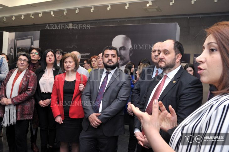 Ցուցադրութեան բացման արարողութեան ներկայ եղած է նաեւ ՀՀ կրթութեան եւ գիտութեան նախարար Արայիկ Յարութիւնեան: «Քանի որ Թումանեանն ու Կոմիտասը առնչութիւն ունեցած են նաեւ ցեղասպանութեան թեմային, այս ցուցադրութիւնը նաեւ կարեւոր է ատով: Այստեղ ցուցադրուած է անոնցմէ իւրաքանչիւրին գործունէութիւնը, եւ ցեղասպանութեան ազդեցութիւնը անոնց գործունէութեան վրայ։ Խորհրդանշական է, որ ցուցադրութիւնը կը բացուի ցեղասպանութեան հերթական տարելիցի նախօրէին, եւ վստահ եմ, որ վաղը մեր շատ հայրենակիցներ նաեւ պիտի այցելեն այս թանգարան եւ ծանօթանան այդ գործունէութեան»,- նշած է նախարարը:
