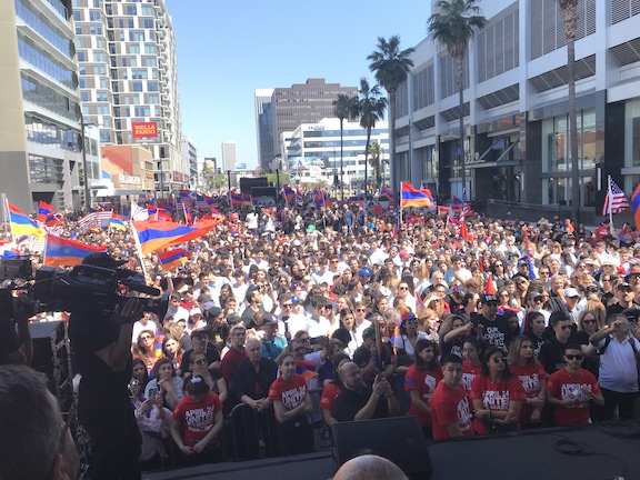 Raising their voices on stage in solidarity with the Armenian Cause were representatives Adam Schiff and Brad Sherman, Los Angeles Mayor Eric Garcetti and Los Angeles City Councilmember Paul Koretz in whose district the demonstration was taking place.