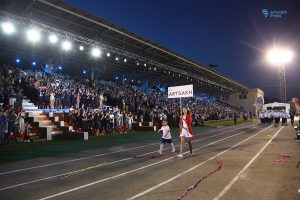 Ախոյեանութեան  մասնակից  Աբխազիոյ, Արցախի,Արեւմտեան Հայաստանի,Հարաւային Օսիայի,Չամերիայի,Սապմիի, Սեկէյի Լանտի, Պատանիայի մարզիկները յաջորդականութեամբ մտած են մարզադաշ`  պտոյտ կատարելով վազքուղով: