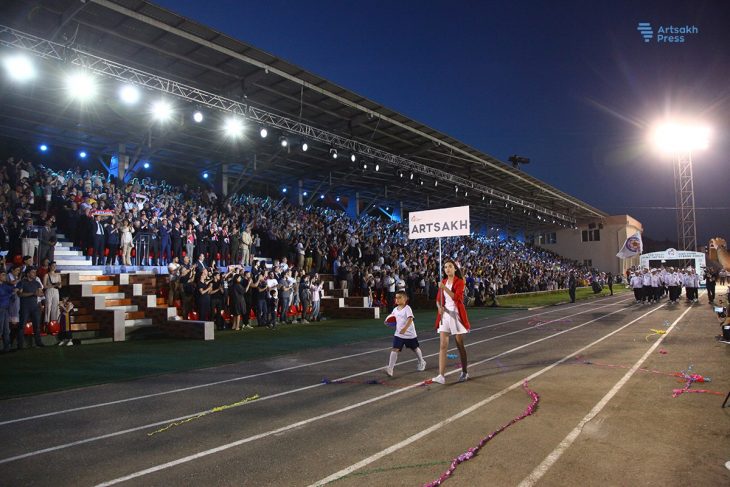 The honor of raising the flags was given “Combat Cross” 1st title holder, Marat Petrosyan, Artsakh Football Federation representative Mher Avanesyan, member of the Artsakh football team Gevorg Mirzoyan.