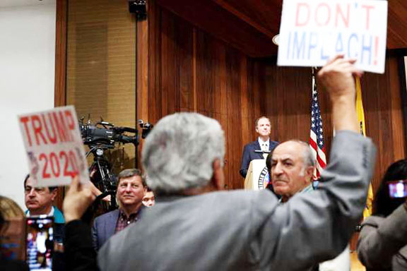 It wasn’t until it was pointed out that the demonstrators’ outburst and misplaced protests were disrespecting the memory of 1.5 million victims of the Genocide and its survivors that they calmed down, with some leaving the auditorium and others sticking around for the remainder of the now reconfigured program, adamantly waving their anti-impeachment and pro-Trump signs and banners.
