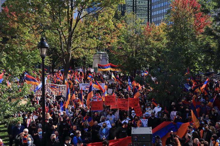 «Միասնական Պայքար, Հաւաքական Յաղթանակ». Մոնթրէալահայութիւնը Բողոքի Ցոյցով Դատապարտեց Թուրք-Ատրպէյճանական Ռազմական Յարձակումերը