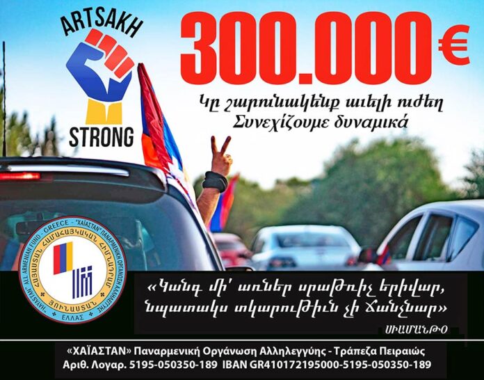 Անդուլ թափով յունահայութիւնը կը շարունակէ իր հայրենասիրական պարտքը կատարել Արցախի մարտնչող բանակին ու ժողովուրդին համար հաստատուած Հայաստան համահայկական հիմնադրամի ֆոնտին։