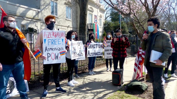 Կազմակերպութեամբ մայրաքաղաք Ուաշինկթընի ՀԵԴ-ի «Անի» ուխտին՝ Շաբաթ, 20 Մարտին, բողոքի ցոյցեր տեղի ունեցան Սպիտակ տան եւ Միացեալ Նահանգներու մէջ Ազրպէյճանի դեսպանատան առջեւ՝ պահանջելով Ազրպէյճանի կողմէ ապօրին կերպով գերի պահուող բոլոր հայ գերիներուն անյապաղ ազատ արձակումը։ Այս մասին ԵՌԱԳՈՅՆ-ը կը տեղեկանայ «Ասպարէզ»-էն։