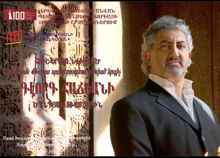 Նշենք, որ ձեռնարկը կը կայանայ Երեւանի Կոմիտասի անուան պետական երաժշտանոցի 100-ամեակին նուիրուած ձեռնարկներու ծիրէն ներս։
