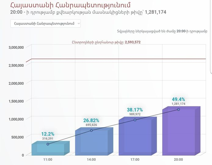 ՀՀ ԱԺ արտահերթ ընտրութիւններուն քուէարկութեան իրաւունք ունեցող անձերու մասնակցութեան նախնական ցուցանիշները ժամը 20:00-ի դրութեամբ՝