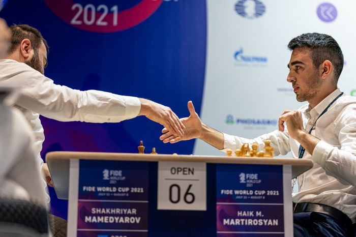 Սոչիի մէջ իրականացուող ճատրակի աշխարհի բաժակի խաղարկութեան 1/32 եզրափակիչին՝ Հայաստանի ներկայացուցիչ, 21–ամեայ Հայկ Մ. Մարտիրոսեան (2648) պայքարէն դուրս ձգեց Ազրպէյճանի հաւաքականի առաջատար, համաշխարհային վարկանիշային աղիւսակի 6–րդ համար, 36–ամեայ Շաքրիար Մամետեարովը (2770)։ Այս մասին ԵՌԱԳՈՅՆ-ը կը տեղեկանայ News.am-էն։
