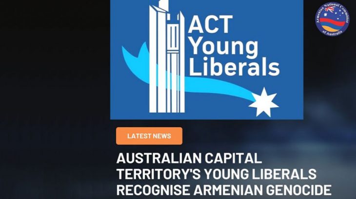 Հայ Դատի Աւստրալիոյ յանձնախումբը կը յայտնէ, թէ Աւստրալիոյ մայրաքաղաքային տարածքի (ACT) ազատական երիտասարդական շարժումը միաձայնութեամբ ճանչցած է 1915-1923թթ․ Օսմանեան Թուրքիոյ կողմէ իրականացուած հայերու, յոյներու եւ ասորիներու ցեղասպանութիւնը։
