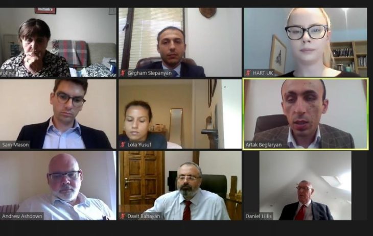 Արցախի Հանրապետութեան պետական նախարար Արտակ Բեգլարեանի, Մարդու իրաւունքներու պաշտպան Գեղամ Ստեփանեանի եւ Արտաքին գործոց նախարար Դաւիթ Բաբայեանի մասնակցութեամբ Օգոստոս 20-ին տեղի ունեցած է առցանց քննարկում՝ Մեծ Բրիտանիոյ եւ Հիւսիսային Իռլանտիայի Միացեալ թագաւորութեան խորհրդարանի Լորտերու պալատի անդամ պարոնուհի Քերոլայն Քոքսի եւ Մարդասիրական օգնութեան բարեգործական կազմակերպութեան (HART-Humanitarian Aid Relief Trust) անդամներու հետ։