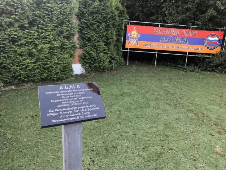 Հայկական եկեղեցւոյ շրջափակին մէջ կան շատ խաչքարեր: Բայց այն, ինչ որ զգացական է, յատուկ մասն է, ուր զետեղուած են բազմաթիւ խաչքարեր կիսակլոր տարածքի մէջ` յիշատակելու համար Հայոց ցեղասպանութեան զոհուած հայորդիները: Եւ իւրաքանչիւր խաչքարի վրայ արձանագրուած է Պատմական Հայաստանի եւ Կիլիկիոյ քաղաքներու անունները: «Այս ալ կառուցեցինք, որպէսզի ցոյց տանք հանրութեան եւ Հոլանտայի ժողովուրդին, որ Ցեղասպանութիւնը իրական է», շեշտեց Օննիկ: