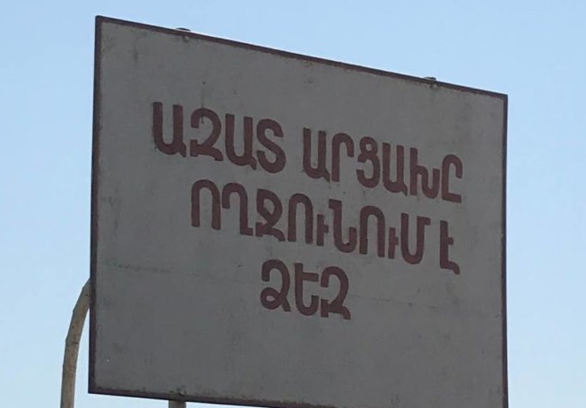 «Ազատ Արցախը ողջունում է Ձեզ»․ Ցուցանակը յուշում է՝ արդէն Արցախում ենք։ Սկսւում է անցակէտերի շարանը։ Թիւով 9 անցակէտ, որոնք անցնելուց յետոյ միայն կարող ես մտնել քո հայրենիք, քո տուն։