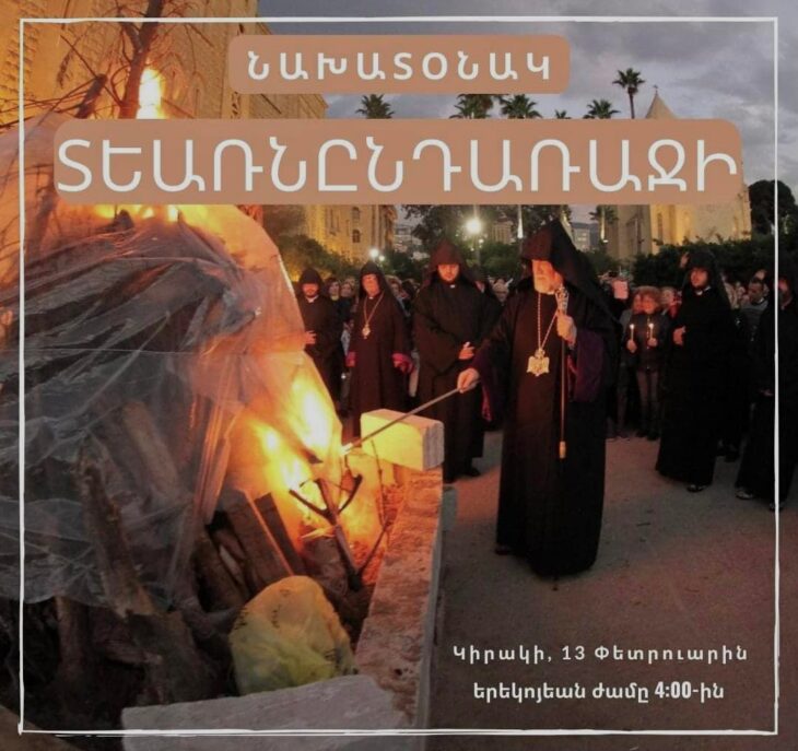 Ապա, Վեհափառ Հայրապետին գլխաւորութեամբ, Մայրավանքի բակին մէջ աւանդական խարոյկը պիտի վառուի: