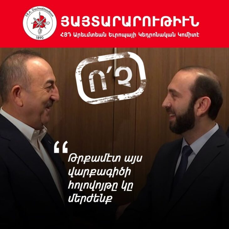 Թրքամէտ Այս Վարքագիծի Հոլովոյթը Կը Մերժենք Էապէս. Յայտարարութիւն՝ Միրզոյեան-Չաւուշօղլու Փակ Հանդիպման Մասին