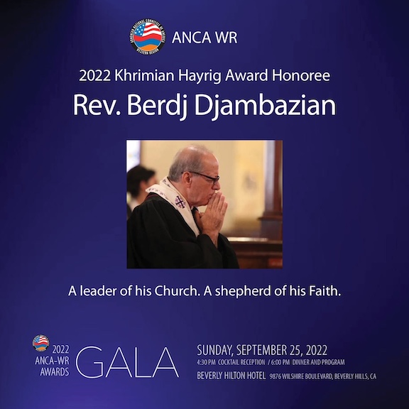 Արեւմտեան Ամերիկայի Հայ Դատի յանձնախումբը կը տեղեկացնէ, թէ իր տարեկան ձեռնարկին ընթացքին, կազմակրպութեան «Խրիմեան Հայրիկ» հեղինակաւոր մրցանակը պիտի յանձնէ վերապատուելի Պերճ Ճամպազեանին՝ իբրեւ վարձատրութիւն աշխարհի տարածքին անոր իրագործած բարեսիրական առաքելութիւններուն։