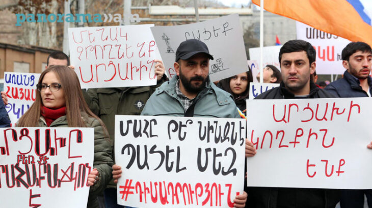 «Արցախի հարցը մեզի համար լոկ տարածքային հարց չէ, անիկա մեզի համար սրբազան հարց է, անիկա տարիներ շարունակ եղած է ու կը մնայ գոյապայքար։ Տէր ենք մեր հայրենիքին, իւրաքանչիւր թիզ հողին»,- դէպի կառավարութեան շէնք երթի ընթացքին, յայտարարեց մասնակիցներէն մէկը, կը հաղորդէ Panorama.am-ը։