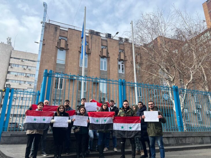 Չորեքշաբթի, 8 Փետրուար 2023_ին, Երեւանի մէջ Սուրիոյ Ուսանողներու Ազգային Միութիւնը բողոքի ցոյց կազմակերպեց Երեւանի ՄԱԿ-ի գրասենեակին դիմաց՝ պահանջելով դադրեցնել Սուրիոյ վրայ պարտադրուած տնտեսական պատժամիջոցները, որպէսզի երկրաշարժին պատճառով տուժածներուն անհրաժեշտ մարդկային օգնութիւններ տրամադրուին։