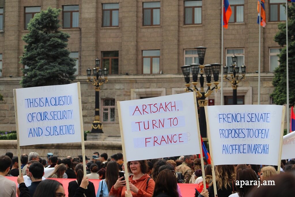 Մայիս 9-ին, Ստեփանակերտի Վերածնունդի հրապարակին վրայ, «Ո՛Չ Արցախի ցեղական զտման» պահանջագիրի եւ ստորագրահաւաքի նախաձեռնող խումբին կողմէ կազմակերպուած է բազմամարդ համաժողովրդական հանրահաւաք։ Այս մասին ԵՌԱԳՈՅՆ-ը կը տեղեկանայ «ԱՊԱՌԱԺ»-էն։
