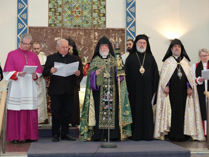Իր խօսքին մէջ, Վեհափառ Հայրապետը մէջբերեց Միջ-Եկեղեցական ժողովներու ընթացքին երգուող հոգեւոր երգը, որ կ՚ըսէ. «Մէկ ենք Քրիստոսով»։