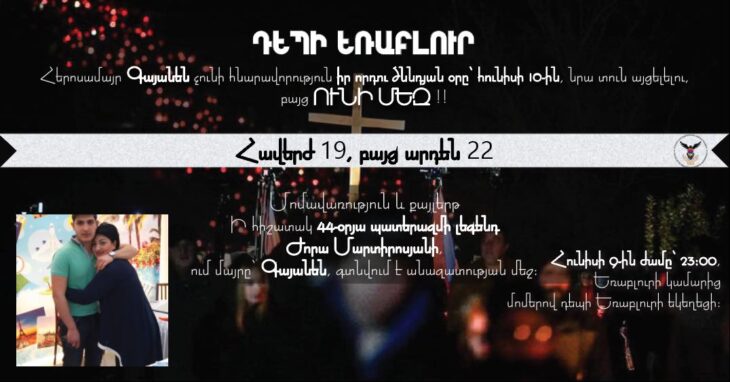 Գայիանէն Անազատութեան Մէջ Ըլլալով Չի Կրնար Այցելել Որդիին․ «Որդիներու Կանչ» ՀԿ Մոմավառութեամբ Քայլերթ Կը Կազմակերպէ