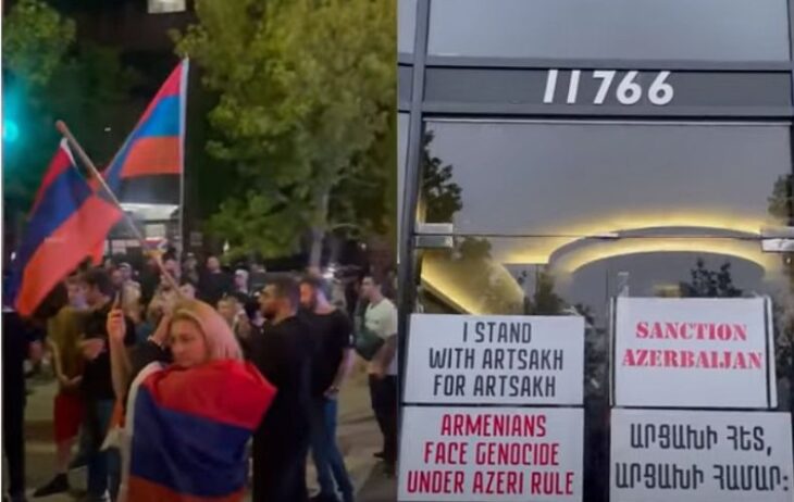 «Բացէք Բերձորի Ճանապարհը». Ամերիկահայերու Ցոյցը՝ Լոս Անճելըսի Մէջ պաքուի Հիւպատոսարանին Դիմաց