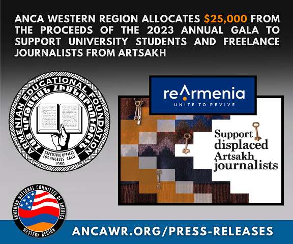 Արեւմտեան Ամերիկայի Հայ Դատի յանձնախումբը կը հաղորդէ, թէ 20,000 տոլար նուիրած է Հայ Կրթական հիմնարկութեան, այդ կազմակերպութեան միջոցաւ օգնութեան ձեռք երկարելու համար Արցախէն համալսարանական ուսանողներու, որոնք Արցախի հայաթափումէն ետք Հայաստան ապաստանած են։ Նաեւ, 5000 տոլարի նուիրատուութիւն մը կատարուած է Արցախէն բռնի տեղահանուած լրագրողներուն աջակցելու նպատակով հաստատուած՝ «Աջակցինք Արցախէն տեղահանուած լրագրողներուն» կազմակերպութեան։