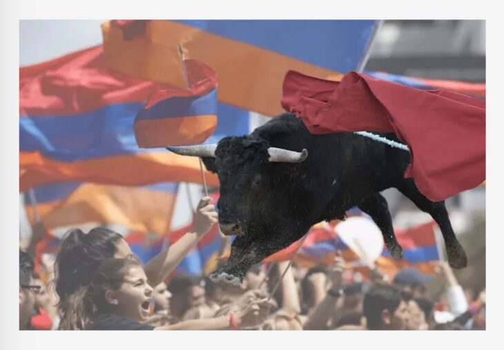 Անոնց համար, որ դժուարութիւն ունին Փաշինեանի այս «առակը» հասկնալու կամ երկմտանքի մատնուած են, քիչ մը մանրամասնենք: Ցուլերը մեր թշնամիներն են (ճի՛շդ բնութագրում), իսկ կարմիր զգեստը մեր Սահմանադրութեան այն բաժիններն են, որոնք կը պահպանեն մեր ազգային աւանդութիւններն ու անվիճելի պահանջատիրութիւնը, բաներ՝ որոնց մասին Պոլթընի այցելութեան օրերէն ի վեր յաճախ հնչած են ու կը հնչեն՝ «կարծրատիպերէ հրաժարելու», «անցեալին պատանդ չմնալու» եւ նմանօրինակ խրատներ, կոչեր, եւ անոնց իսկական նպատակն է Հայը զրկել իր իսկութենէն, խզել պատմութենէն եւ սեփական ձեռքով (իմանալ՝ իշխանաւորներուն ձեռքով) ինքզինք մատնել կորստեան, իրականացնել համաթուրանական ծրագիրը: