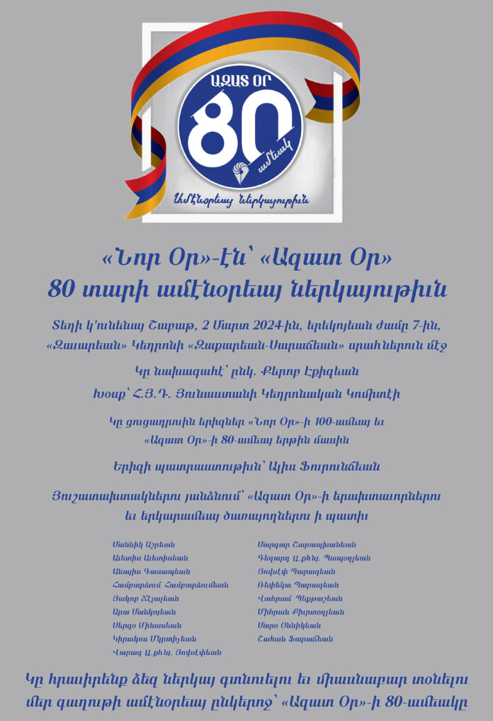 «Նոր Օր»էն՝ «Ազատ Օր» 80 Տարի Ամէնօրեայ Ներկայութիւն