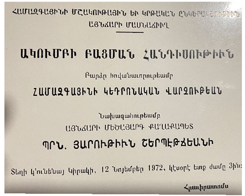 Վարուժն ու ես գոհ էինք եւ շոյուած կը զգայինք, որ նման  կարեւոր «առաքելութիւն» մը կը վստահուէր մեզի: