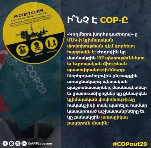 Նշեալ կէտերը մաս մըն են, որուն վրայ կրնանք հիմնուիլ ու բողոքել, սակայն Ատրպէյճանը խորապէս ճանչնալու համար անհրաժեշտ է այցելել հետևեալ կայքը՝ https://protestcop29.org: