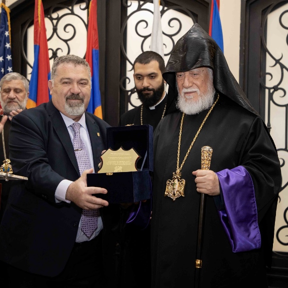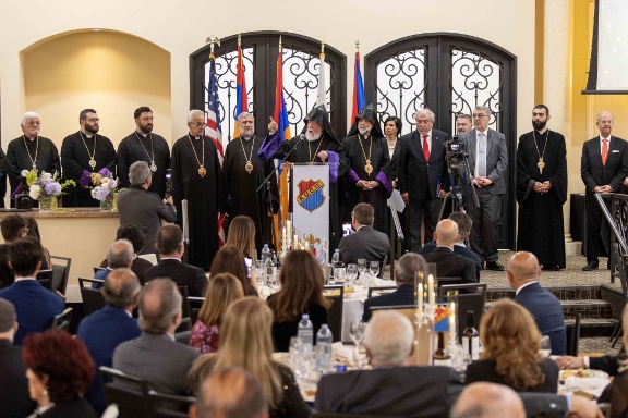 Ատենապետին խօսքէն ետք բեմ հրաւիրուեցաւ վեհափառը, որպէսզի իր հայրապետական օրհնութեան խօսքը ուղղէ ներկաներուն։ «ՀՄԸՄ-ը էապէս դպրոց է եւ ո՛չ թէ սոսկ մարմնակրթական միութիւն։ Այս կ՛ուզեմ յիշեցնել ՀՄԸՄ-ին եւ մեր ժողովուրդին՝ ամէն անգամ երբ առիթը ունենամ ՀՄԸՄ-ին հետ ըլլալու: Ճիշդ է, իր արտաքինով, մեթոտներով, կազմակերպչական գործընթացքով ու աշխատանքներով մարմնակրթական միութիւն է ան, սակայն իր էութեամբ ու առաքելութեամբ դպրոց է: ՀՄԸՄ-ը դպրոց է, որովհետեւ ան յատուկ կարեւորութիւն կու տայ կրօնական ու հայեցի դաստիարակութեան՝ մեր պատանիները թրծելով հոգեւոր, բարոյական ու ազգային արժէքներով: Սփիւռքի մեր կեանքէն ներս, ուր պայմաններու բերումով հայ դպրոց չկար, ՀՄԸՄ-ը եղաւ հայ դպրոց: Նոյնը կը մնայ ՀՄԸՄ-ը այսօ՛ր եւս: Իմ հայրապետական թելադրութիւնս է, որ մարզական աշխատանքներէն անդին, ՀՄԸՄ-ը յատուկ կարեւորութիւն ընծայէ հայեցի դաստիարակութեան՝ հայուն մէջ հա՛յը կրթելով եւ հայուն ինքնութիւնը բիւրեղացնելով»:
