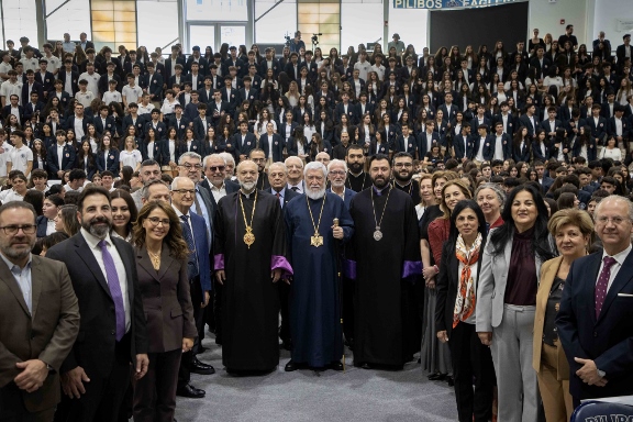 Բարի գալուստի խօսք արտասանեց Փիլիպոս վարժարանի տնօրէն Սիւզի Օհանեան, որ ողջունելէ եւ իր երախտագիտութիւնը յայտնելէ ետք վեհափառին՝ հրաւիրեց յիշեալ վարժարաններու ներկայացուցիչ աշակերտները, որպէսզի ուղղեն իրենց սրտի խօսքը։