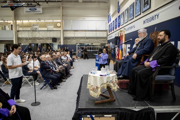 Իր խօսքին մէջ, անդրադառնալով այժմէական հարցերու՝ Արամ Ա. կաթողիկոսը ըսաւ. «Այսօր կը դիմագրաւենք դժուարութիւններ՝ Հայաստան, Արցախ, Սփիւռք, ճարտարագիտութիւն, Սփիւռքի մէջ հայ ըլլալու տագնապ եւ տակաւին կարելի է շարքը երկարել: Ես որեւէ տագնապ կը բնորոշեմ իբրեւ մարտահրաւէր: Այս բոլորին մասին մեր երիտասարդները պէտք է գիտնան եւ ծանօթութենէ ու գիտակցութենէ բխող ըսելիք պէտք է ունենան: Ահա ասոր համար ես պատրաստ եմ լսելու մեր երիտասարդները»:
