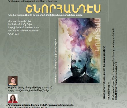«ԱՍՊԱՐԷԶ» «Լարք» երաժշտական ընկերակցութեան կազմակերպութեամբ՝ Շաբաթ, 1 Մարտին, երեկոյեան ժամը 5-էն սկսեալ, տեղի պիտի ունենայ Կոմիտասի ամբողջական գործերուն Ա. հատորին շնորհահանդէսը, հատորին նոր խմբագրութեամբ եւ լրացումներով վերահրատարակութեան առիթով։ Ձեռնարկը տեղի […]