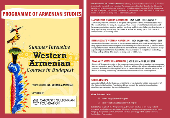 The Programme of Armenian Studies announced the Summer Intensive Courses in Western Armenian for the sixth consecutive year. For the second time, the courses will be held in Budapest over […]